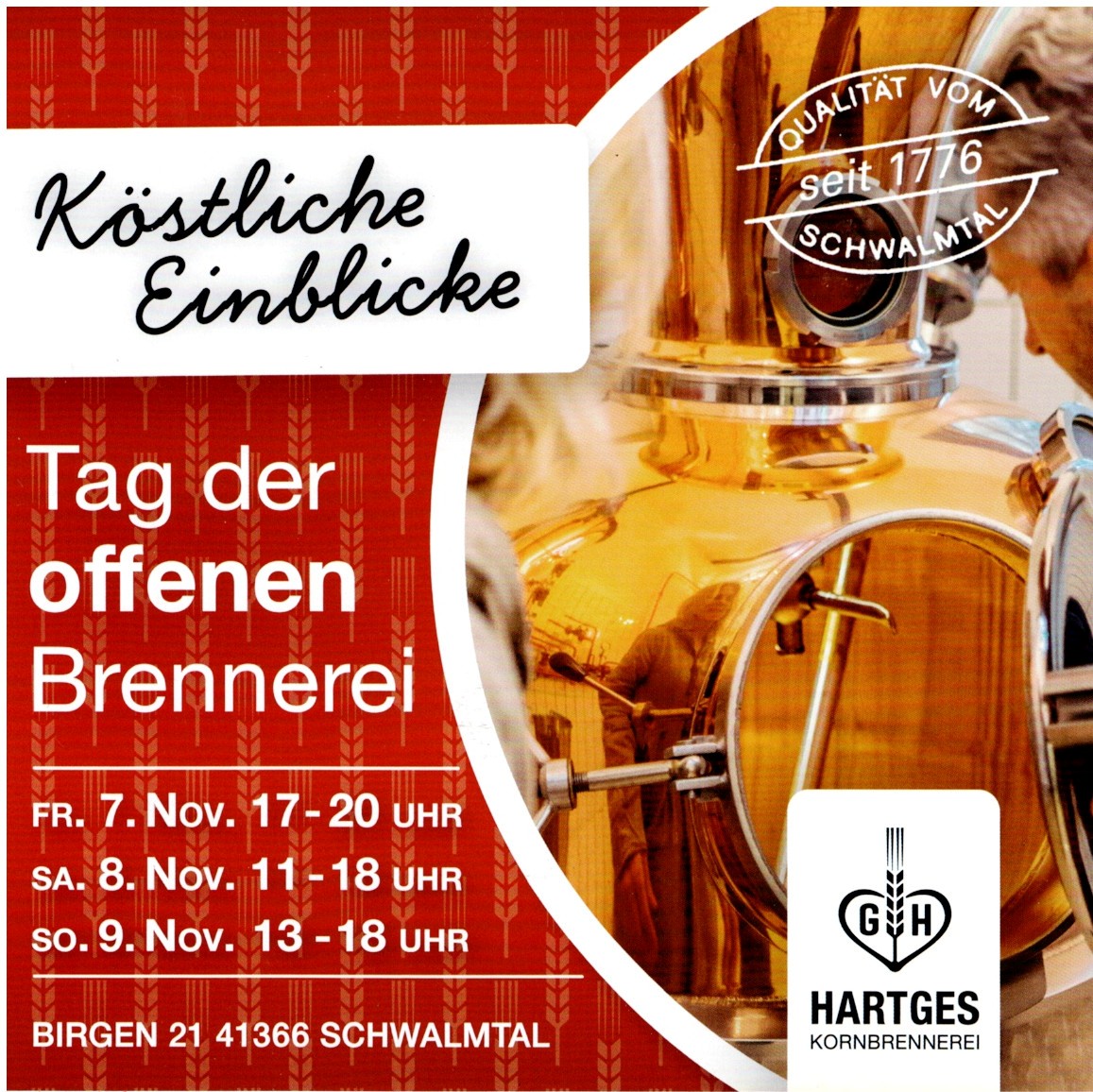 Am kommenden Wochenende, Freitag 7. November bis Sonntag 9. November ist der „Tag der offenen Brennerei“ bei der Traditionsbrennerei HARTGES in Schwalmtal, Birgen 21.